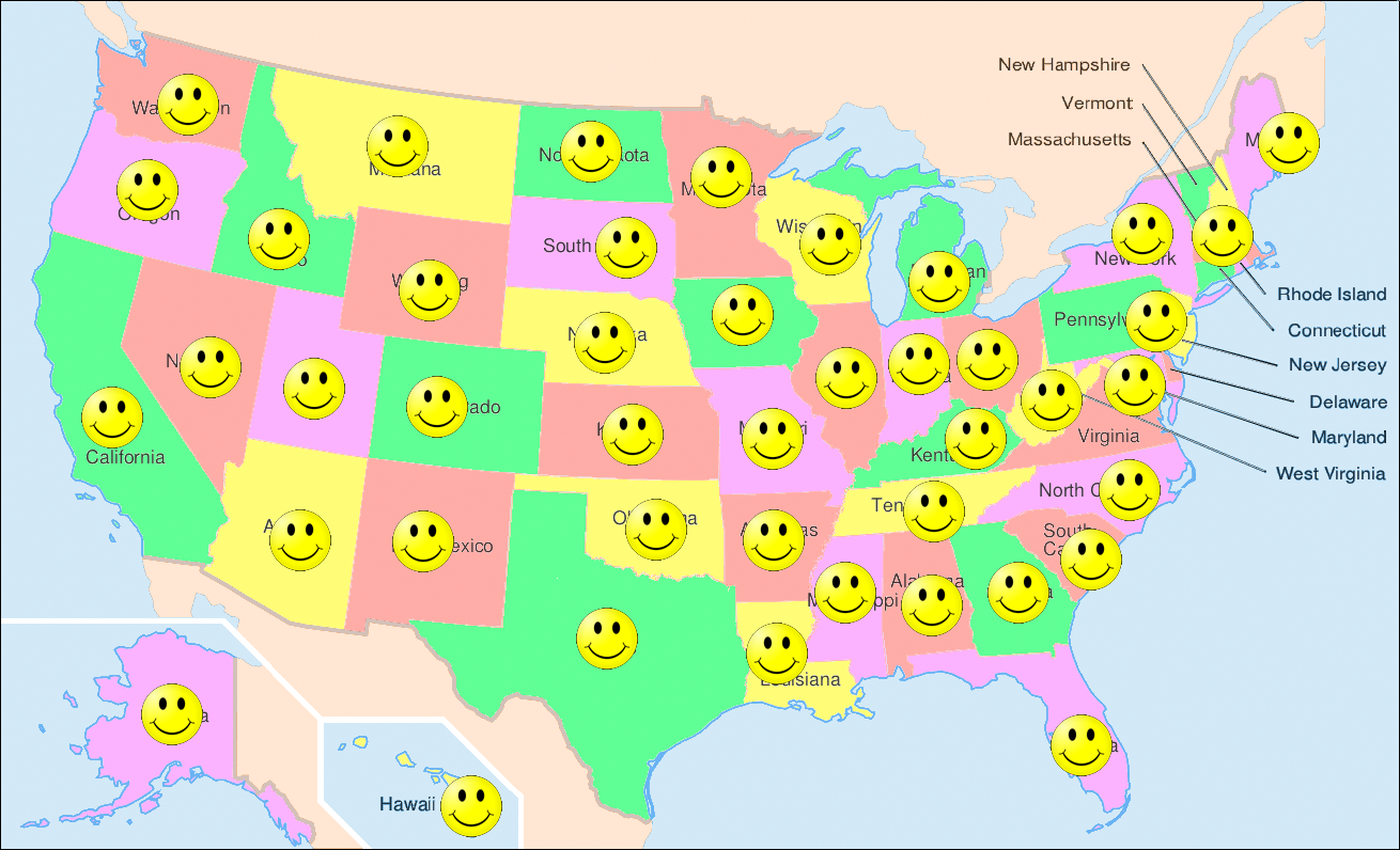 Alex' Happy Map of the USA. © Alex Sumner 2011.