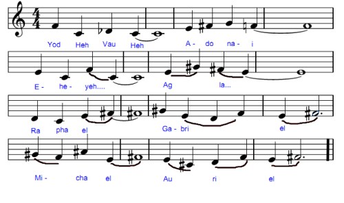 Armed with this knowledge you can now grab any music instrument you have to hand, such as a guitar, recorder or a keyboard (if convenient), and start working out how Hebrew divine names would sound if sung to the notes proposed in the table above. Here are some I prepared earlier: