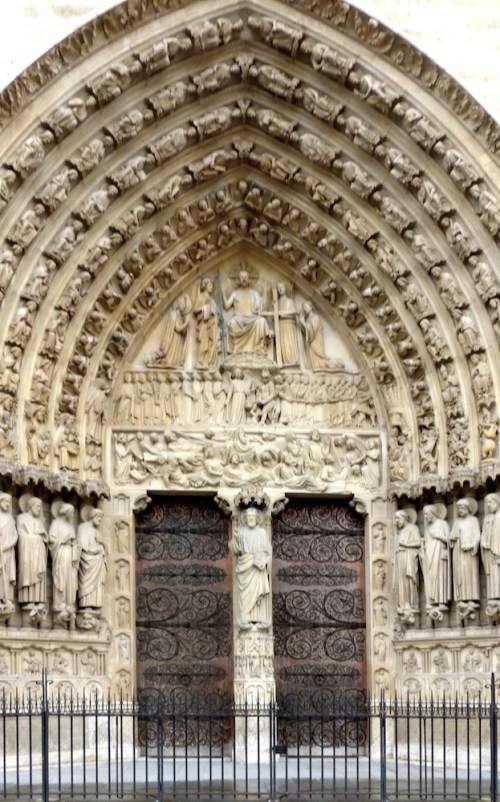 Mediaeval Alchemists would use Notre-Dame as a meeting place. Moreover, the design in inherently alchemical: its cruciform manner points out that the “Sign of the Cross” represents the preparation of the Stone (cf: the Transept – which “crosses” the Cathedral – effectively refers to the Gold of Tiphereth). The Rose window above the western door represents the wheel of time – the time necessary to concoct the stone. Moreover the main west door – the “Porte Du Jugement” – is elaborately decorated – superficially to represent the last Judgement, but on closer examination contains a plethora of Hermetic symbolism.