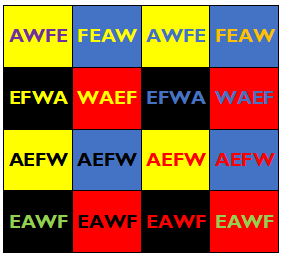The order of the Elements in each lesser angle, according to the Golden Dawn.