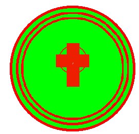 I visualised the negative of the Lamen: a red disc, surrounded by a grean border, with a green Rose-Cross in the middle. I “projected” myself into it. I made the Opening Portal gesture, and vibrated YHVH Eloah ve-Daath, and Raphael – I also made LVX signs and vibrated IAO