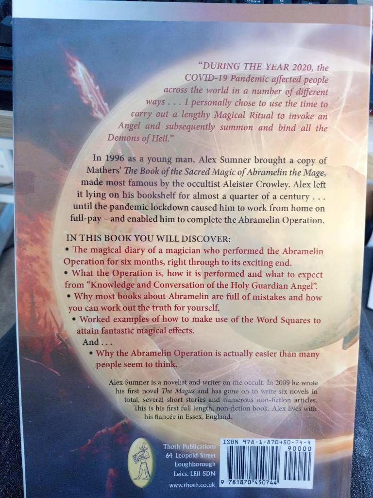 In 1996 as a young man, Alex Sumner brought a copy of Mathers’ The Book of the Sacred Magic of Abramelin the Mage, made most famous by the occultist Aleister Crowley. Alex left it lying on his bookshelf for almost a quarter of a century . . . until the pandemic lockdown caused him to work from home on full-pay – and enabled him to complete the Abramelin Operation.