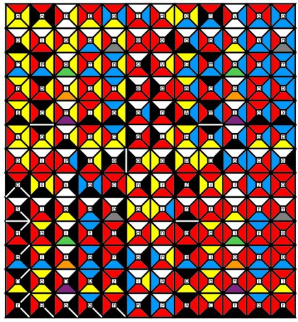 The upper side of each pyramid is governed by the Kerub standing on the file above it. The lower side is governed by the Kerub also, but in order descending as the are from right to left above.”