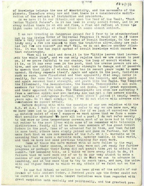 What this shows is that Amoun Temple did not have a permanently installed Vault of the Adepti. Instead, it appears that they only had one for a month or less each year, whilst the rest of the time it was either in storage or being used somewhere else (nb: this document is dated May 18th 1911, less than a month before Corpus Christi). During the short space of time that it was available, they worked all the Adept grades that were due that year, as well as the Corpus Christi Ceremony, in addition to affording time to Adepti to perform skrying in the Vault.