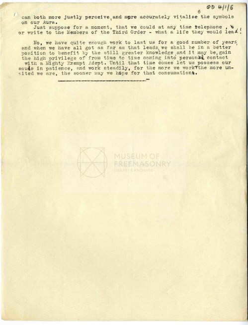 Unfortunately we are unable for the present to have a permanent Vault, a permanent home for the Inner Order. It is the point at which I aim, and some day I hope we shall be able to afford an Inner Shrine.