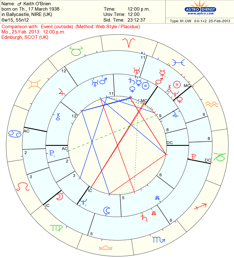 Nevertheless: when looking for the stars of the day, I cannot help but notice that the same planet that figured so highly in the chart for the Pope’s departure is also prominent in that of the Cardinal’s, viz. Uranus. However, whereas in the Pope’s case I am willing to believe that His Holiness’ departure is genuinely due to the decrepitude of old age (because he is currently undergoing a Uranus-return), O’Brien’s recession is far more intriguing.